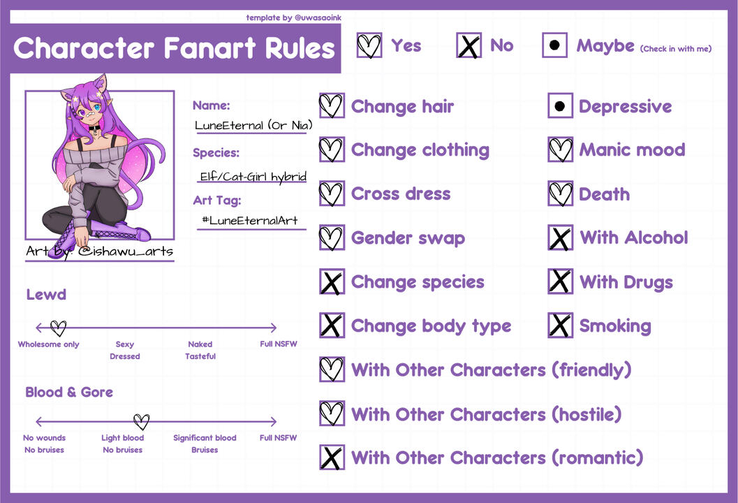 Fanart - As long as it adheres to my boundaries, I would love to see it! (Tag me on Twitter @LuneEternal for me to see)Here's the full Fanart Boundaries as well!